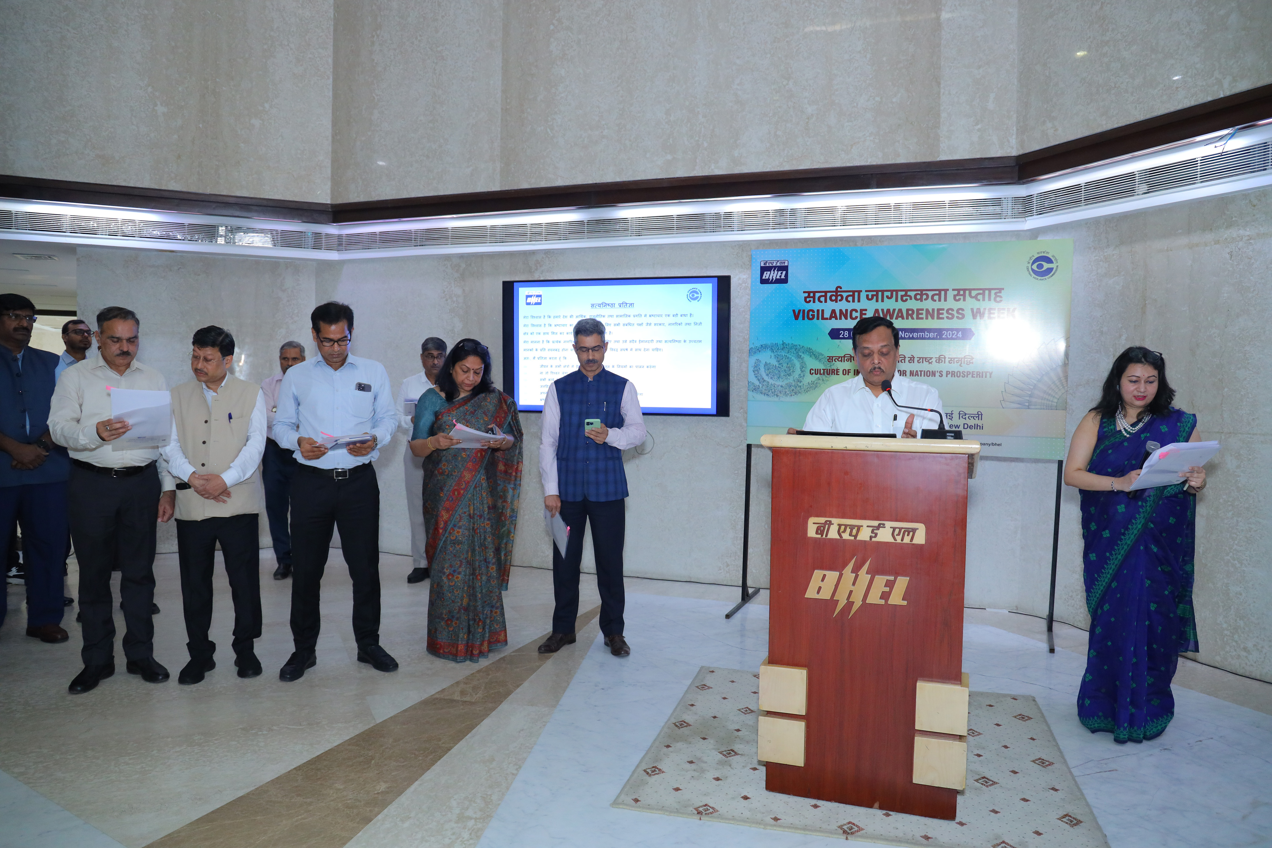 New Delhi; October 28: Sh. K. Sadashiv Murthy, Chairman & Managing Director, BHEL, administered the Integrity Pledge to employees at the company’s Corporate Office, New Delhi in the presence of the Functional Directors and the Chief Vigilance Officer on the inaugural day of the Vigilance Awareness Week 2024. Messages of the Hon’ble President of India, the Hon’ble Vice President of India, Hon’ble Prime Minister of India, and the Central Vigilance Commission were also read out on the occasion.